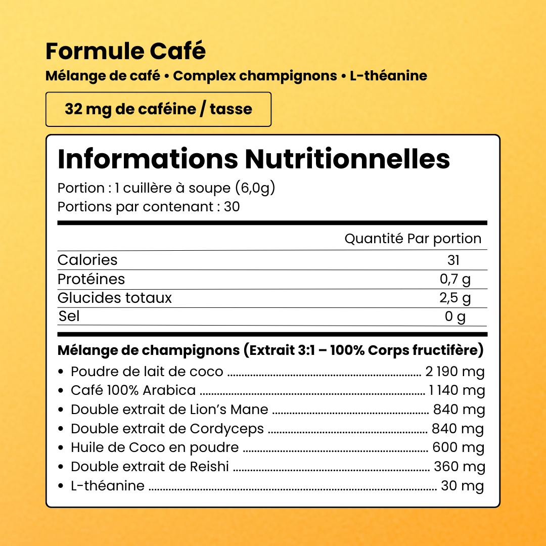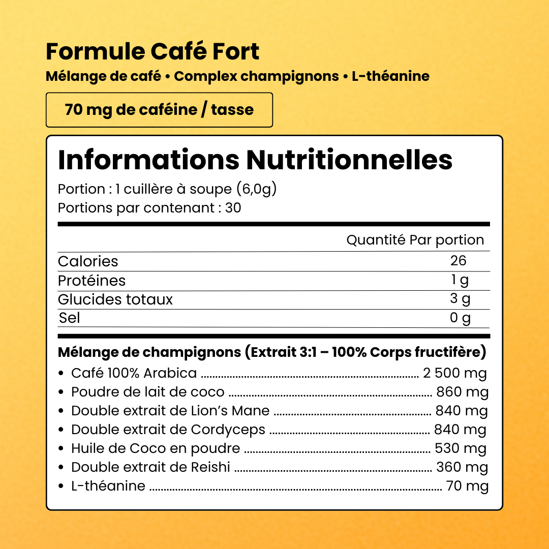 Le délicieux café que vous adorez, enrichi de champignons adaptogènes et à la L-théanine pour favoriser la concentration, l'énergie, l'immunité et la santé intestinale.